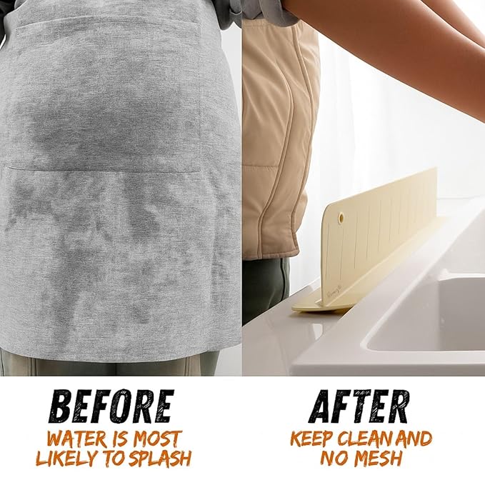 - SPLASH-FREE SINK SOLUTION: Tired of water splashes ruining your clothes during dishwashing? The Kitchen Sink Splash Guard keeps you dry and your kitchen clean with innovative design that prevents water splattering.